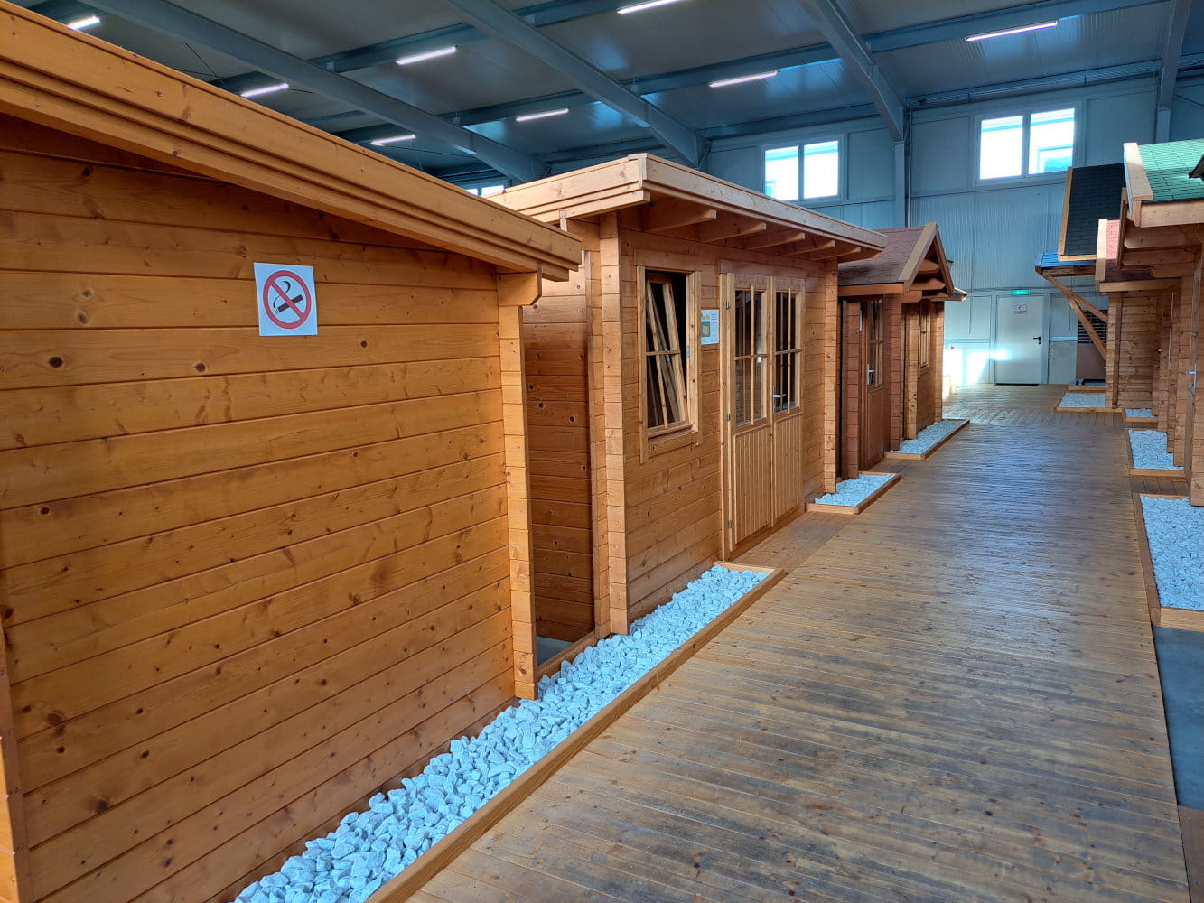 Unser großer überdachter Musterpark mit 16 ein- bis zweistöckigen Musterhäusern in der